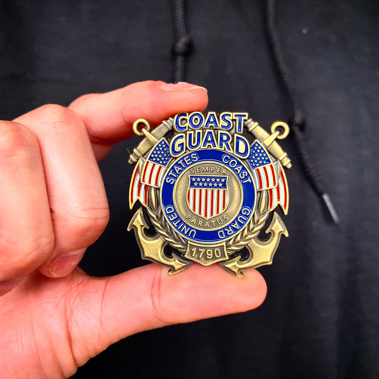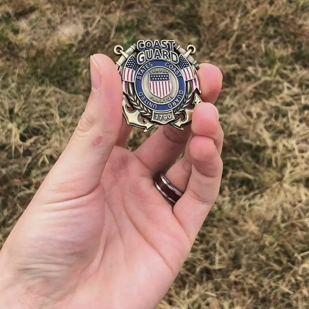 Featuring a bronze plated hand carved anchors, US Flag and shield, this US Coast Guard Veteran pin is the perfect gift for you or a loved one who has served our country with honor and pride.