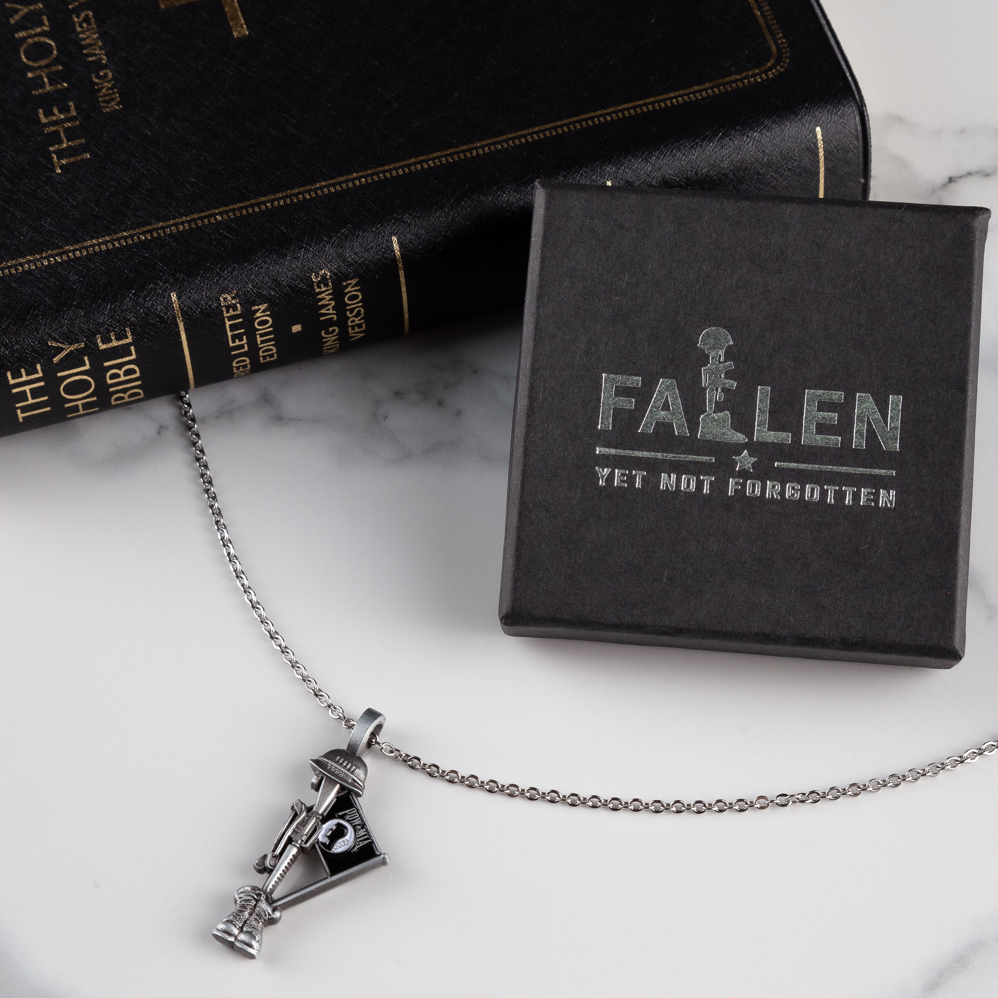This limited edition Fallen Soldier POW Memorial Necklace is a perfect gift for you or a loved one. It comes with a unique copper finish and plush box.