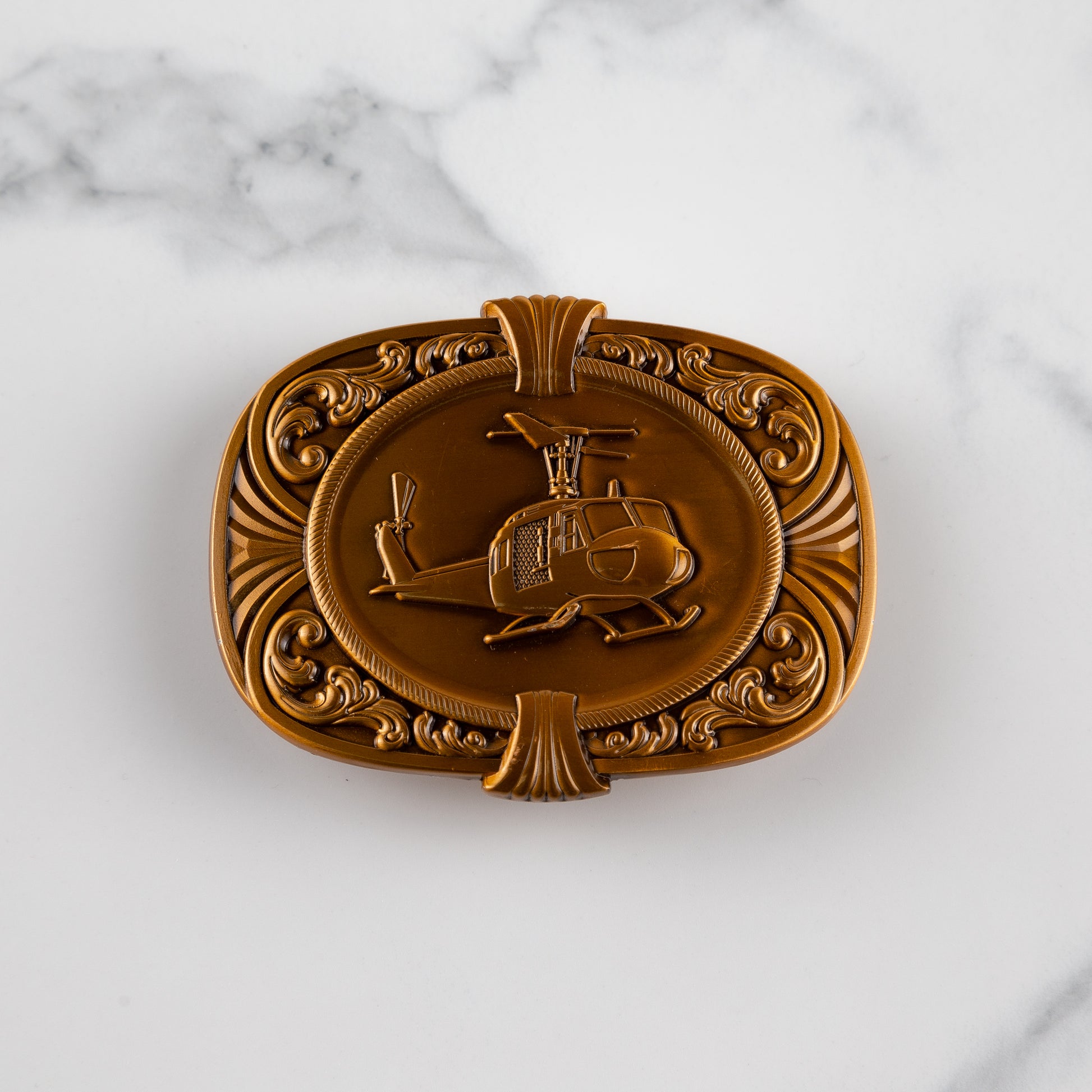 This unique Huey Helicopter Belt Buckle is the perfect gift for you or a loved one who supports our Vietnam Veterans or has served our country with honor and pride.